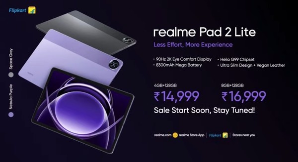 它有星云紫和深空灰两种颜色可供选择。4GB+128GB版本售价14,999卢比(约合人民币1268元),8GB+128GB版本售价为16,999卢比(约合人民币1440元)。官方将很快公布销售日期和首销优惠。它将通过realme Store应用程序、realme.com、Flipkart和附近的商店出售。
