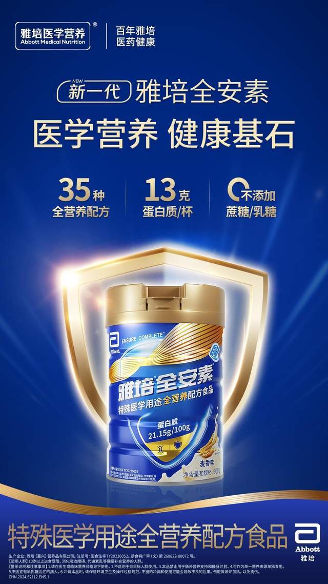 作为有着专业医药背景的百年品牌,雅培医学营养十分注重为老年人群的全面营养补充和健康生活保驾护航。其中“医学营养品”是整合了医学和营养学专业知识指导的营养配方,经过临床效果验证加持,为老年人和康复人群提供全面而科学的营养补充方案。