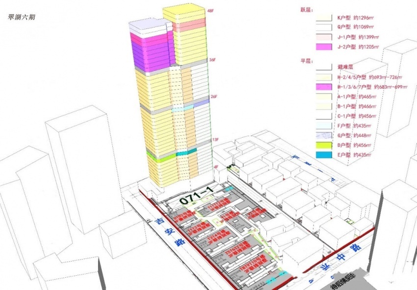 翠湖天地六期此次推出1栋48层、总高度180米的超高层住宅,共108套塔尖豪宅,其中约470㎡84套,约520㎡6套,约700㎡14套,以及4套顶层复式。