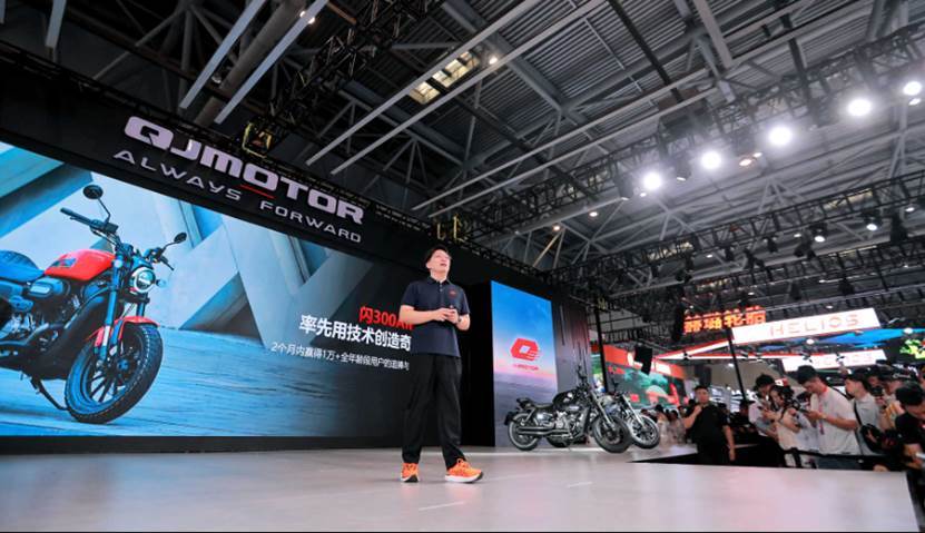 QJMOTOR参展产品包括公升级仿赛之王赛921、WSBK战车赛800、性能爆款车型追550和赛550S、V4大巡航闪600和上市即创造销量奇迹的闪300AMT等高热度车型。