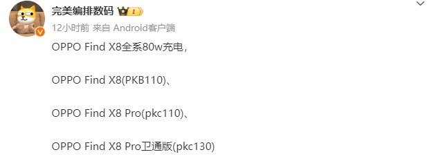 据博主 @完美编排数码 透露, PKB110 对应 OPPO Find X8,PKC110 对应 OPPO Find X8 Pro,PKC130 对应 OPPO Find X8 Pro 卫通版。