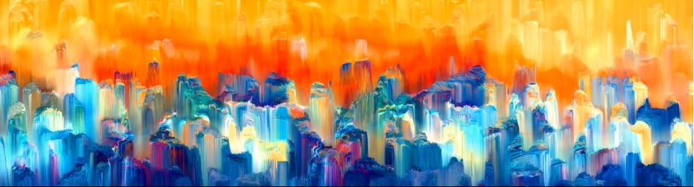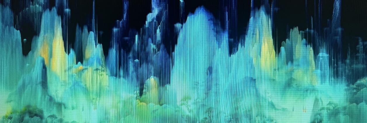 席陆晨的“山水落”系列作品以中式传统山水画为创作灵感,将传统的美学精髓与AI生成技术交融,在浦江的夜幕下,呈现出山与水、刚与柔的动态和谐。通过数字化的山水景观,作品探索了传统与现代之间的紧密联系。观众在现代都市的光影变幻中,能够感受到来自传统山水画的宁静与力量,同时也被激发出对文化传承与创新变革的思考,仿佛站在时光的交汇点上,见证着古今交融的宏大画卷。