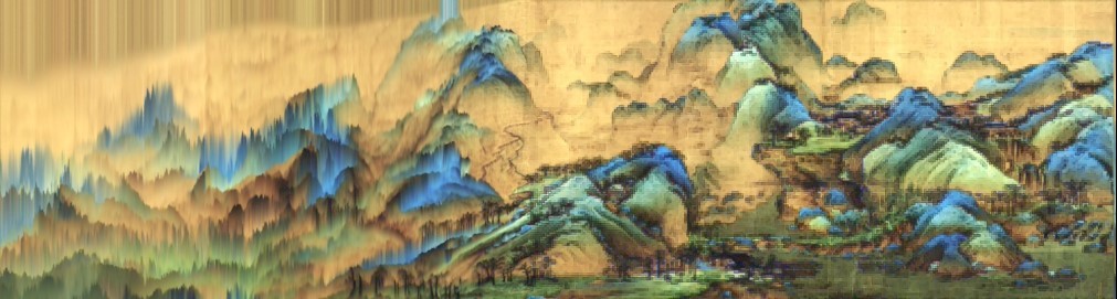 丁大梦的《重构·流动的山水意境》以现代新媒体数字技术重新解构《千里江山图卷》,让静止在绢本上的青绿山水通过光影在建筑上徐徐展开。烟波浩渺的江河、层峦起伏的群山、渔村野市、水榭亭台、茅庵草舍、水磨长桥………透过穿越千年的艺术之光,传统水墨画空间的美感、流动的意境、变幻的色彩以全新的方式演绎,用符合当下审美语境让更多人能感受到中华文化的独特魅力。