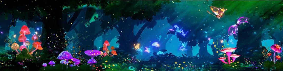 罗曼设计公司的《秘境幽光》,呈现出一幅幅如梦如幻、令人心驰神往的唯美画面:夜幕低垂,一片梦幻森林悄然苏醒,万籁俱寂中,点点流萤如星辰散落,为幽暗的林间小径铺上了一条光与影的梦幻之路。鲜花于夜色中悄然绽放,彩蝶翩翩起舞,它们在微光中旋转、跳跃,演绎着生命的华章。一座瀑布闪耀蓝色光芒潺潺而下,宛如银河倾泻,为静谧的夜色增添了几分神秘与浪漫。由粒子构成的精灵麋鹿,在这夜色秘境中缓缓漫步,步伐轻盈而优雅,仿佛自远古走来的守护者,引领着观者穿梭于现实与梦幻的边缘。