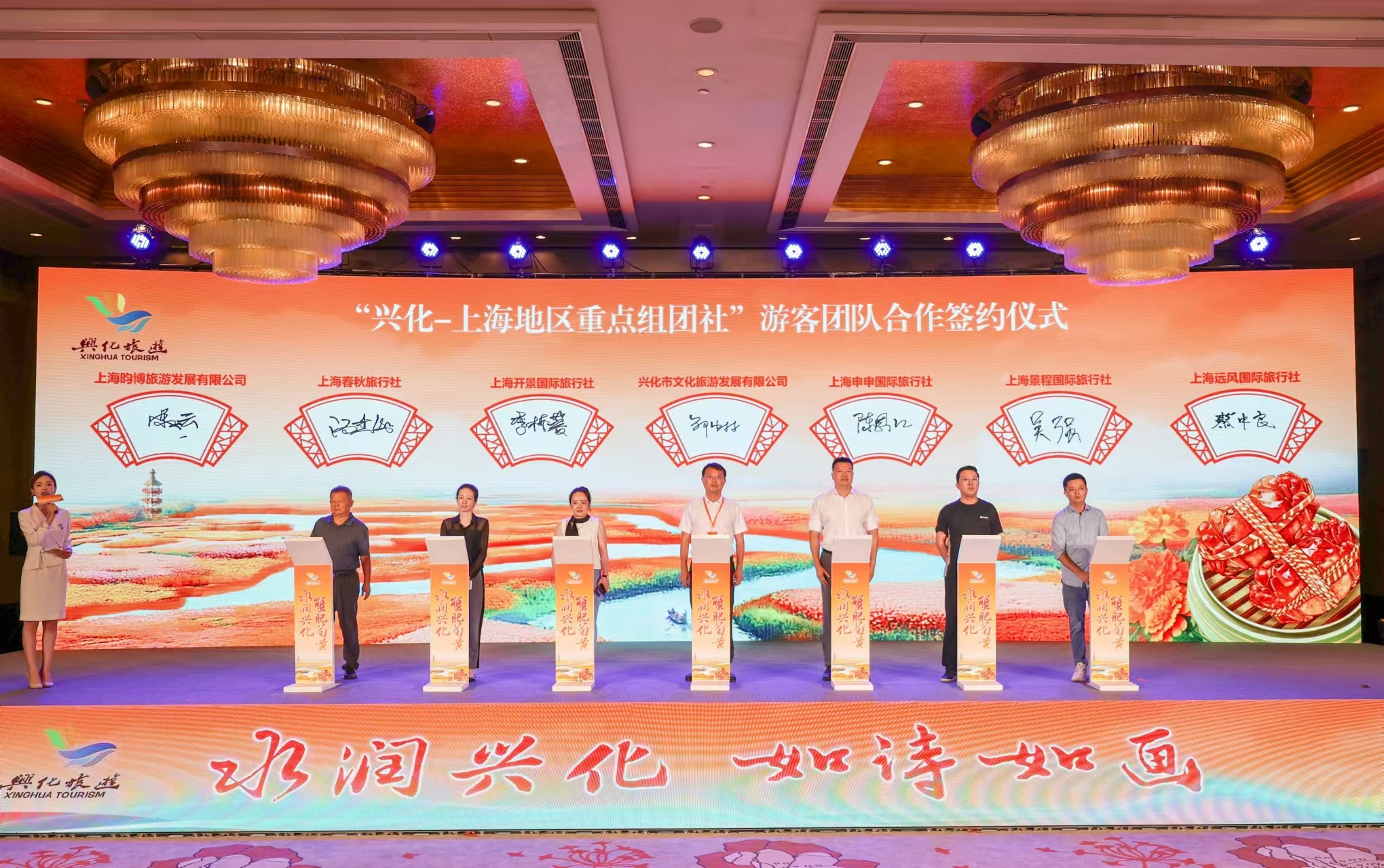 一同邂逅千垛的金秋盛景,共赴蟹肥菊黄的秋实之约。9月13日,2024江苏·兴化品蟹赏菊旅游季暨文旅产业集中推介活动在上海举行。现场,兴化市文旅公司与上海6家重点旅行社举行“兴化—上海组团社”游客团队合作签约仪式。