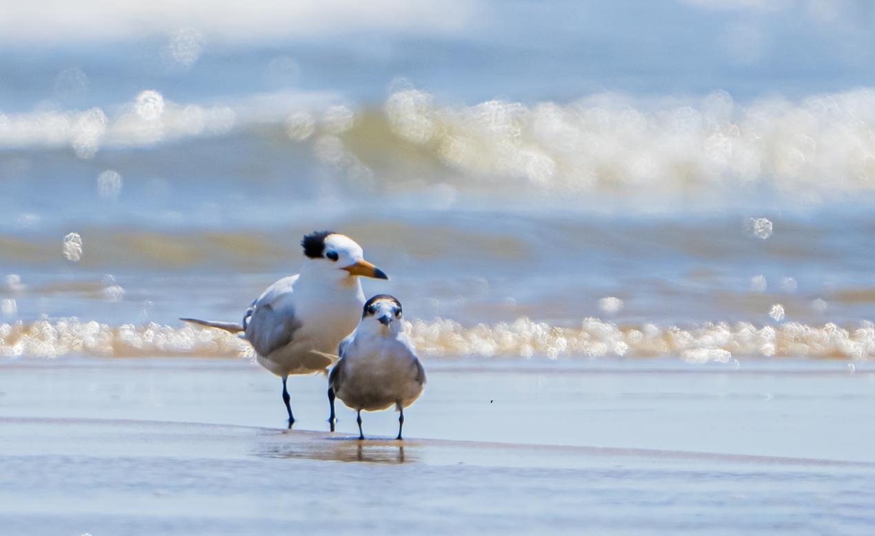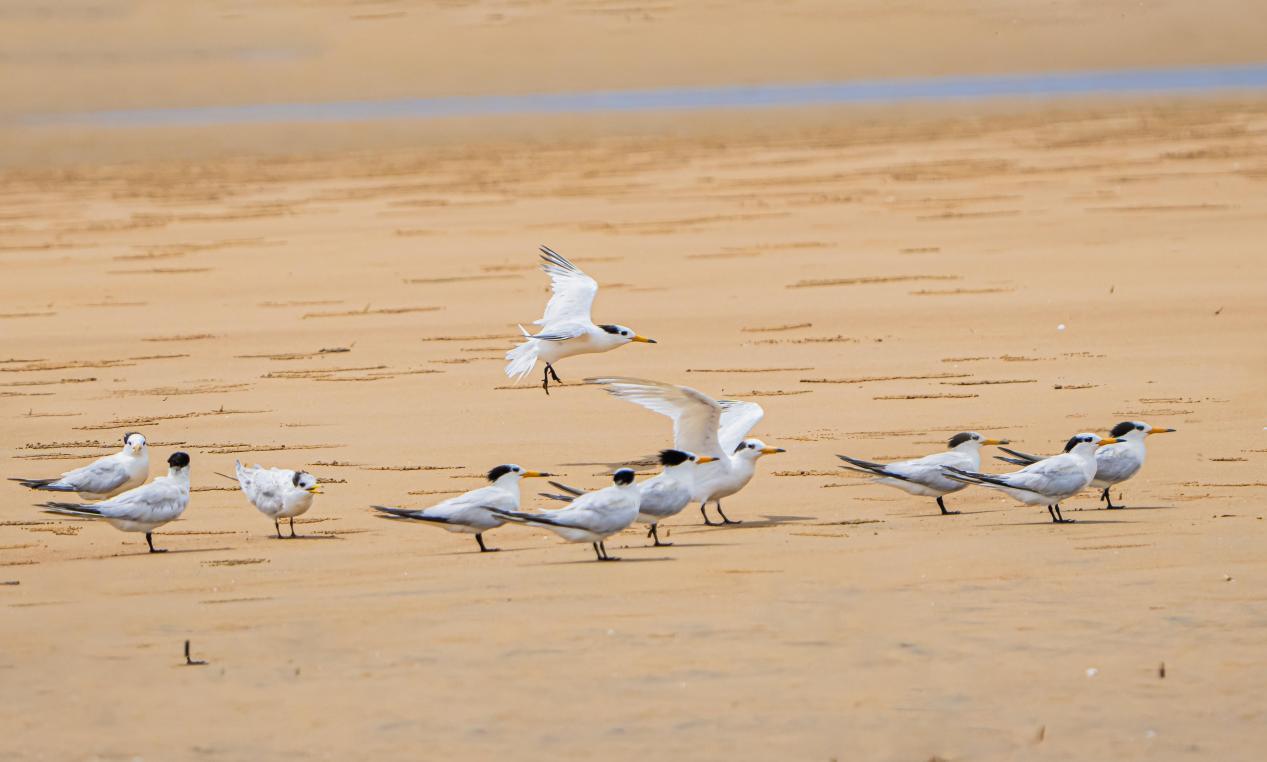 中华凤头燕鸥来到日照刘家湾赶海园嬉戏、觅食。秦立平 摄