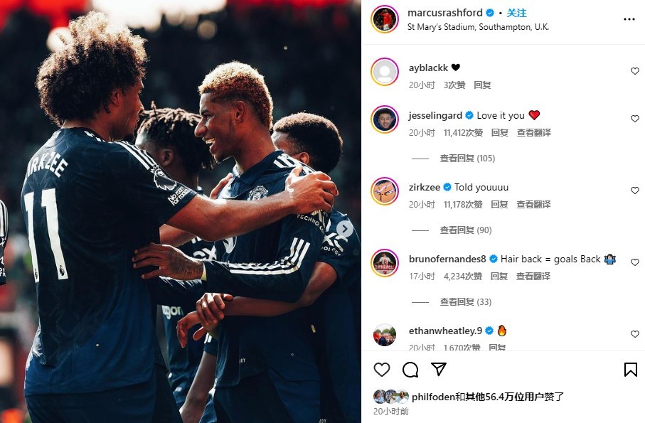 在昨天晚上进行的英超第4轮比赛中,曼联客场3-0击败南安普顿,其中拉什福德打入一球,赛后,他在社交媒体上发表动态庆祝球队取胜。