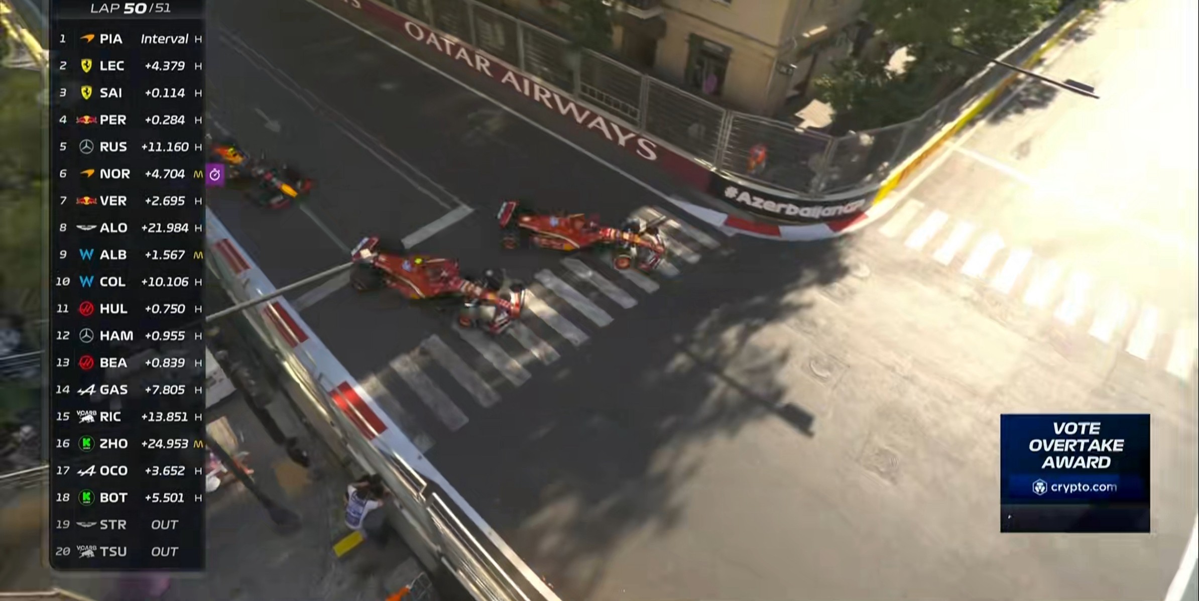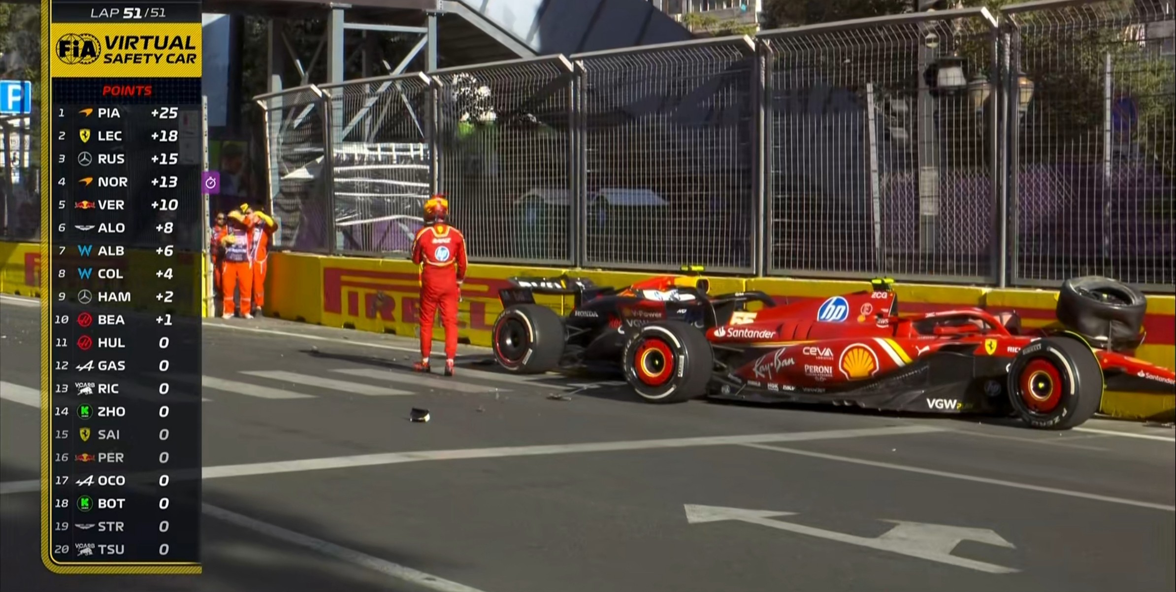 第51圈:虚拟安全车出动,塞恩斯&佩雷兹退赛!!!