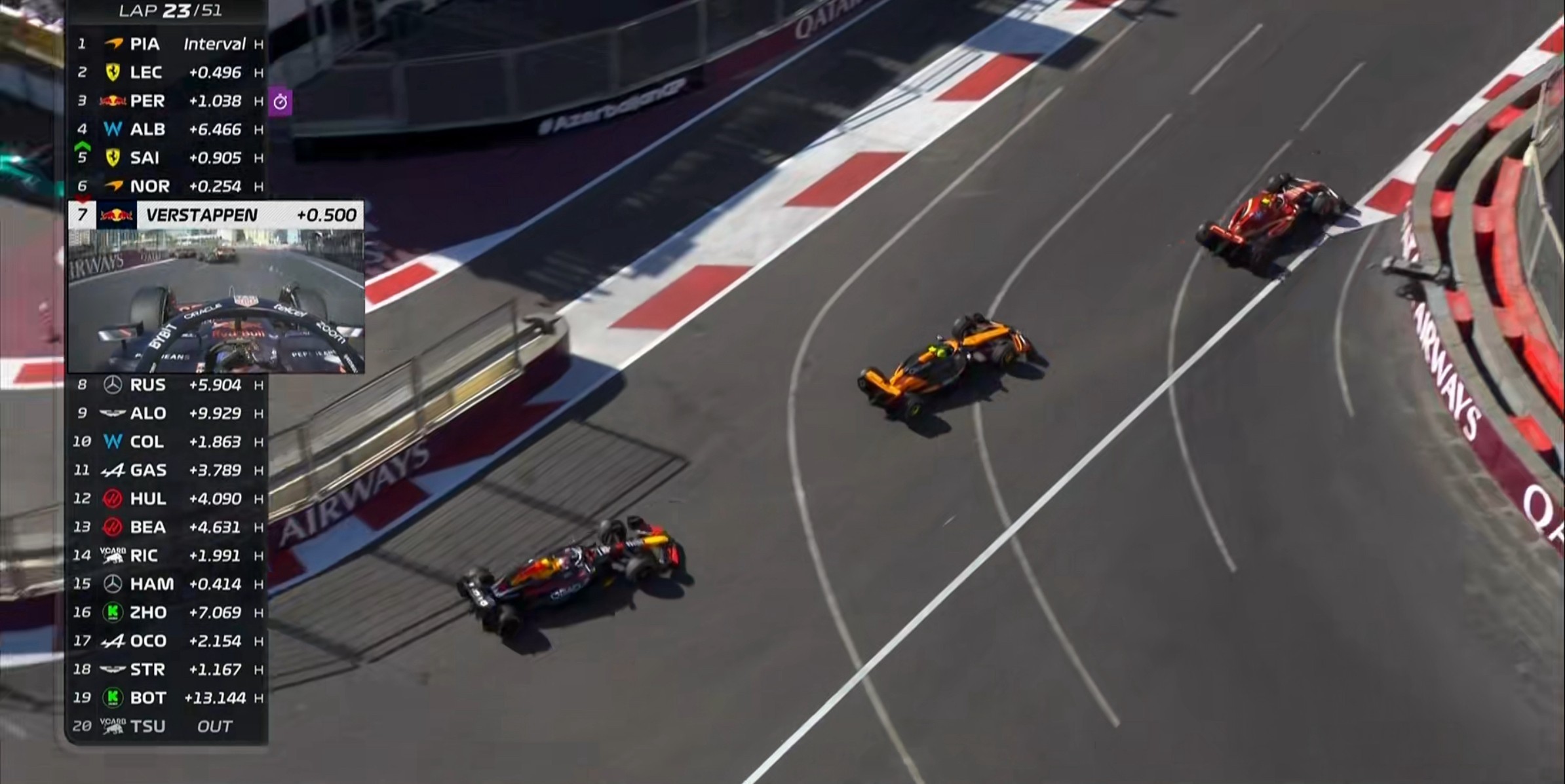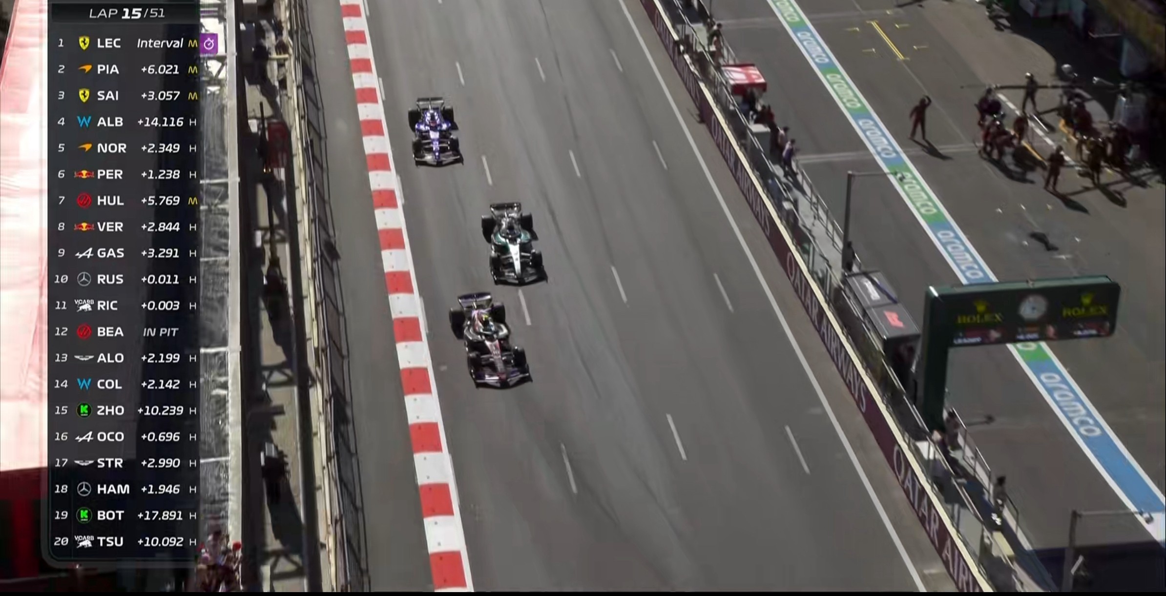 第1-第5:皮亚斯特里、勒克莱尔、拉塞尔、诺里斯、维斯塔潘