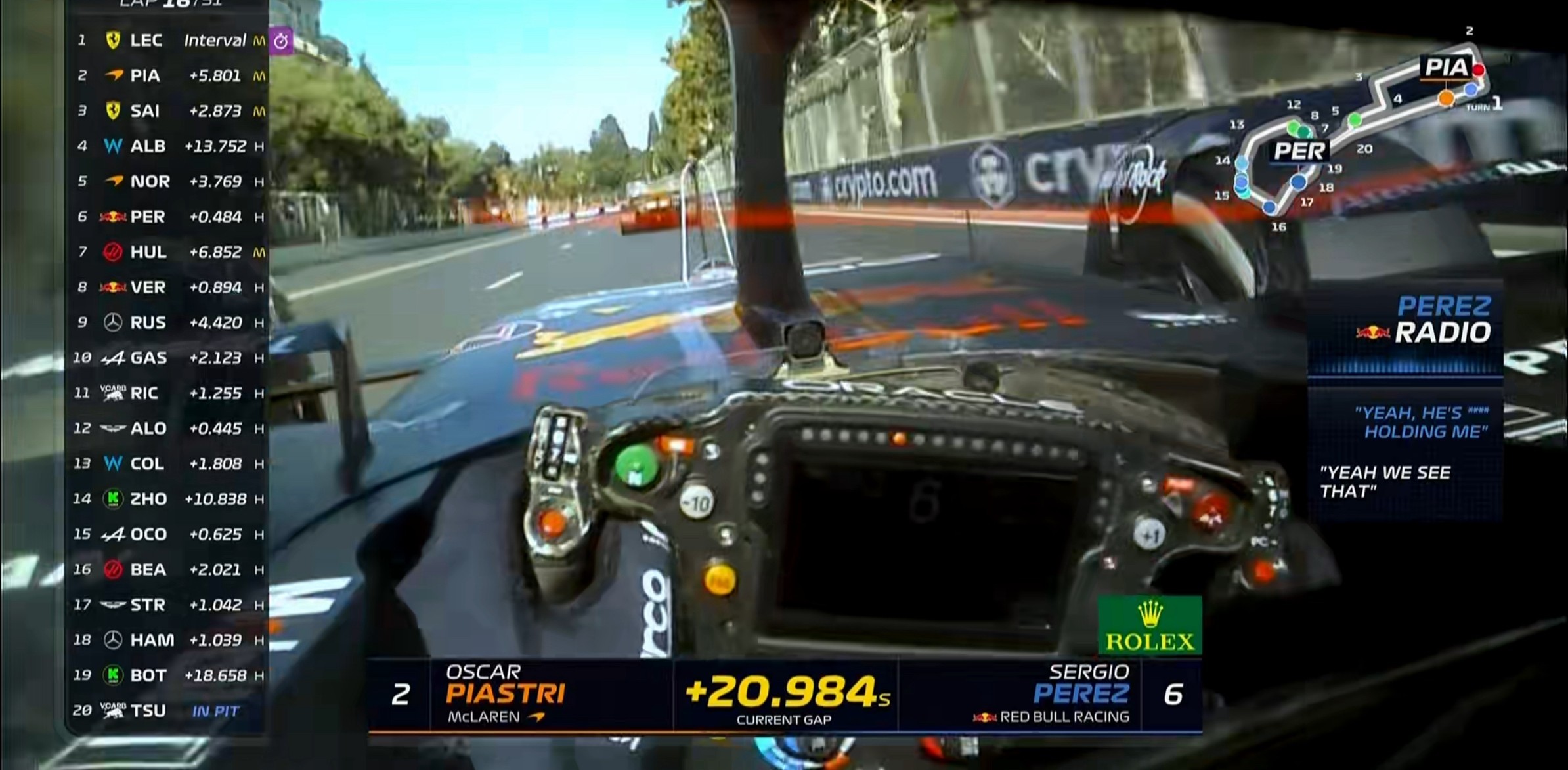 梦回阿布扎比?佩雷兹的TR中表示他察觉到诺里斯在降速拖住他!