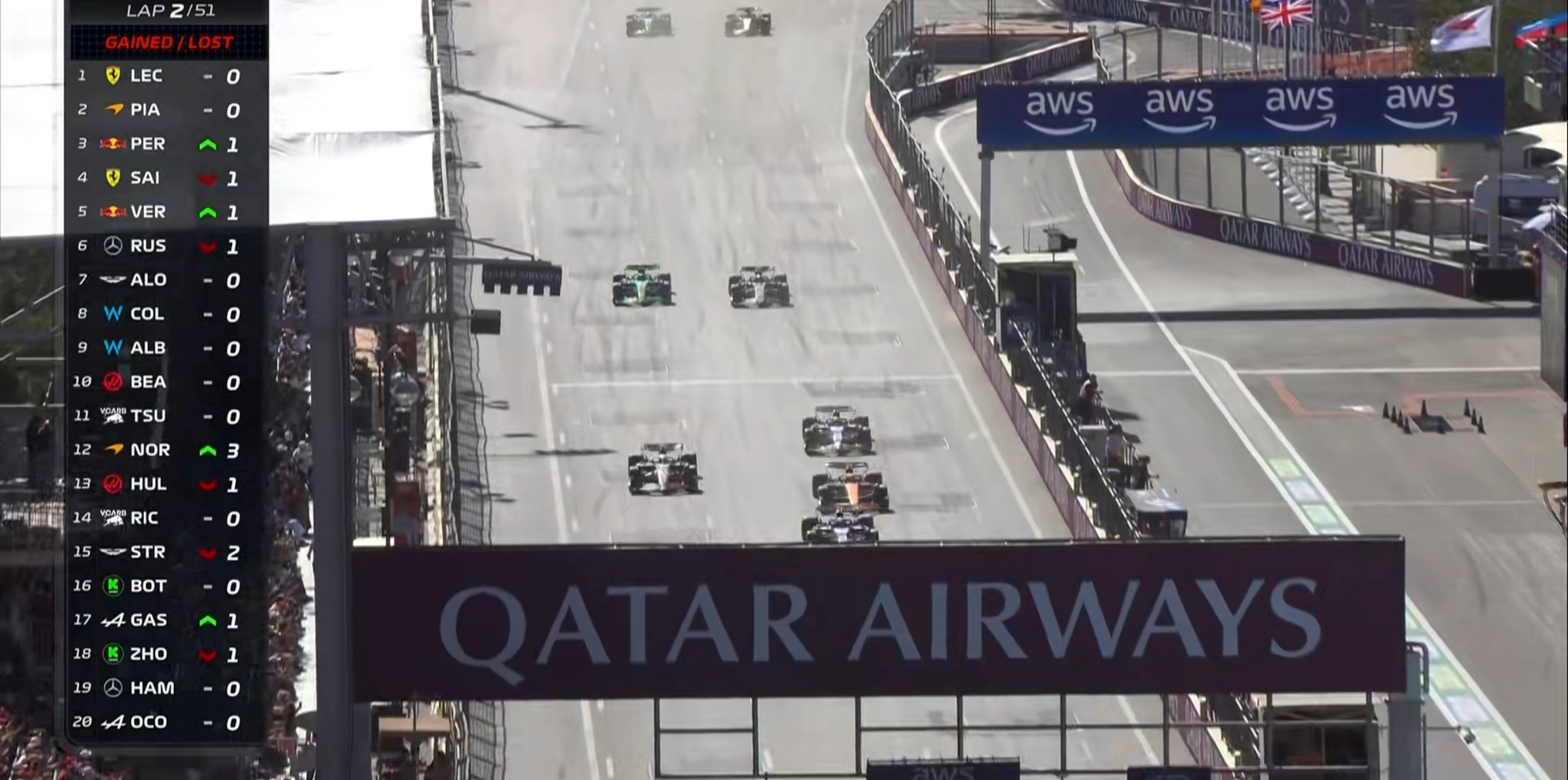 第1圈:勒克莱尔守住杆位,佩雷兹超越塞恩斯上到第3!