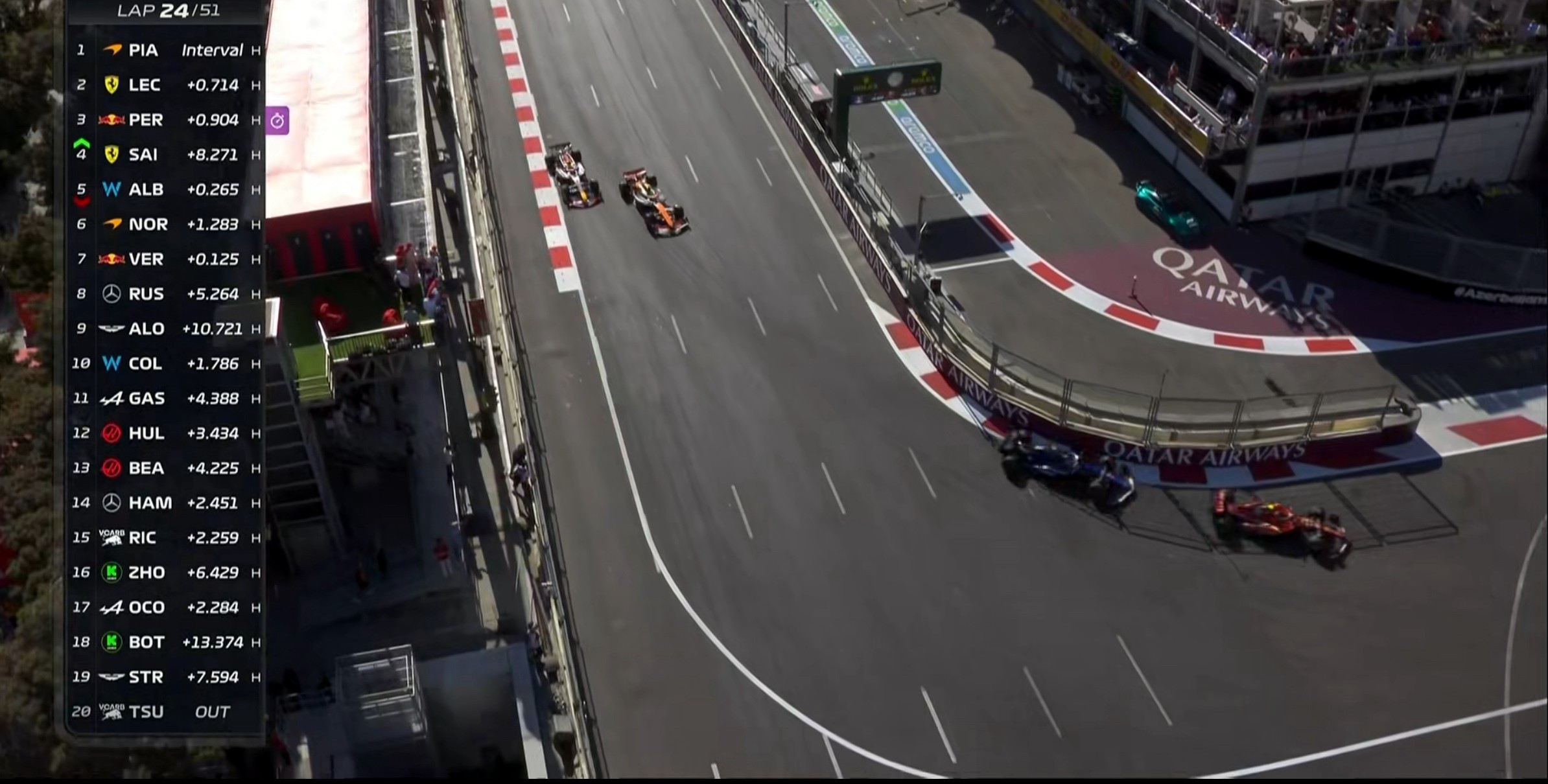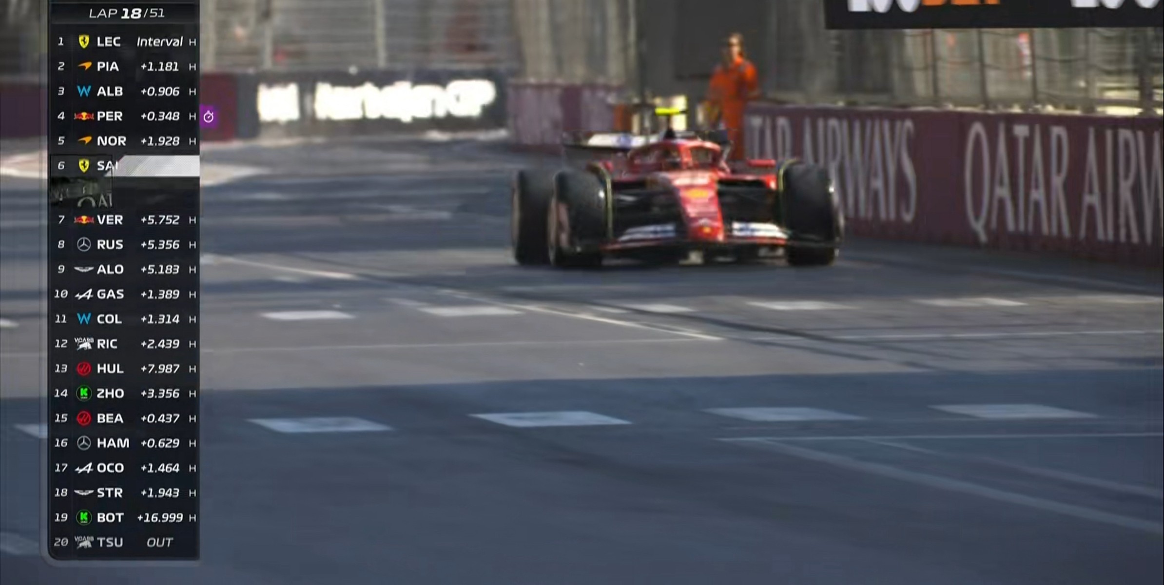 第24圈:塞恩斯超越阿尔本,诺里斯强硬防守维斯塔潘!