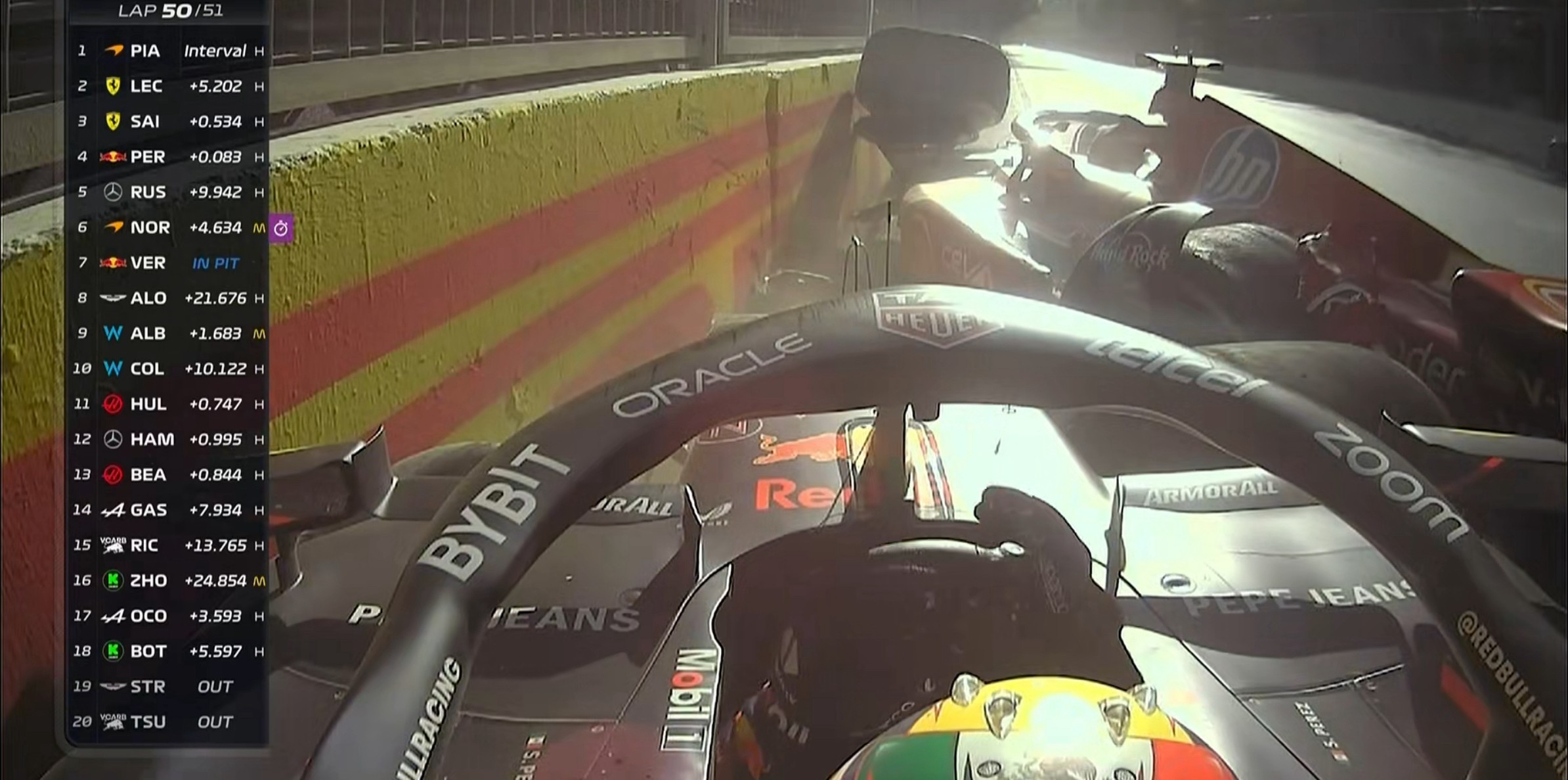 第50圈:非常混乱的争夺,塞恩斯反而上到第3,佩雷兹落到第4!