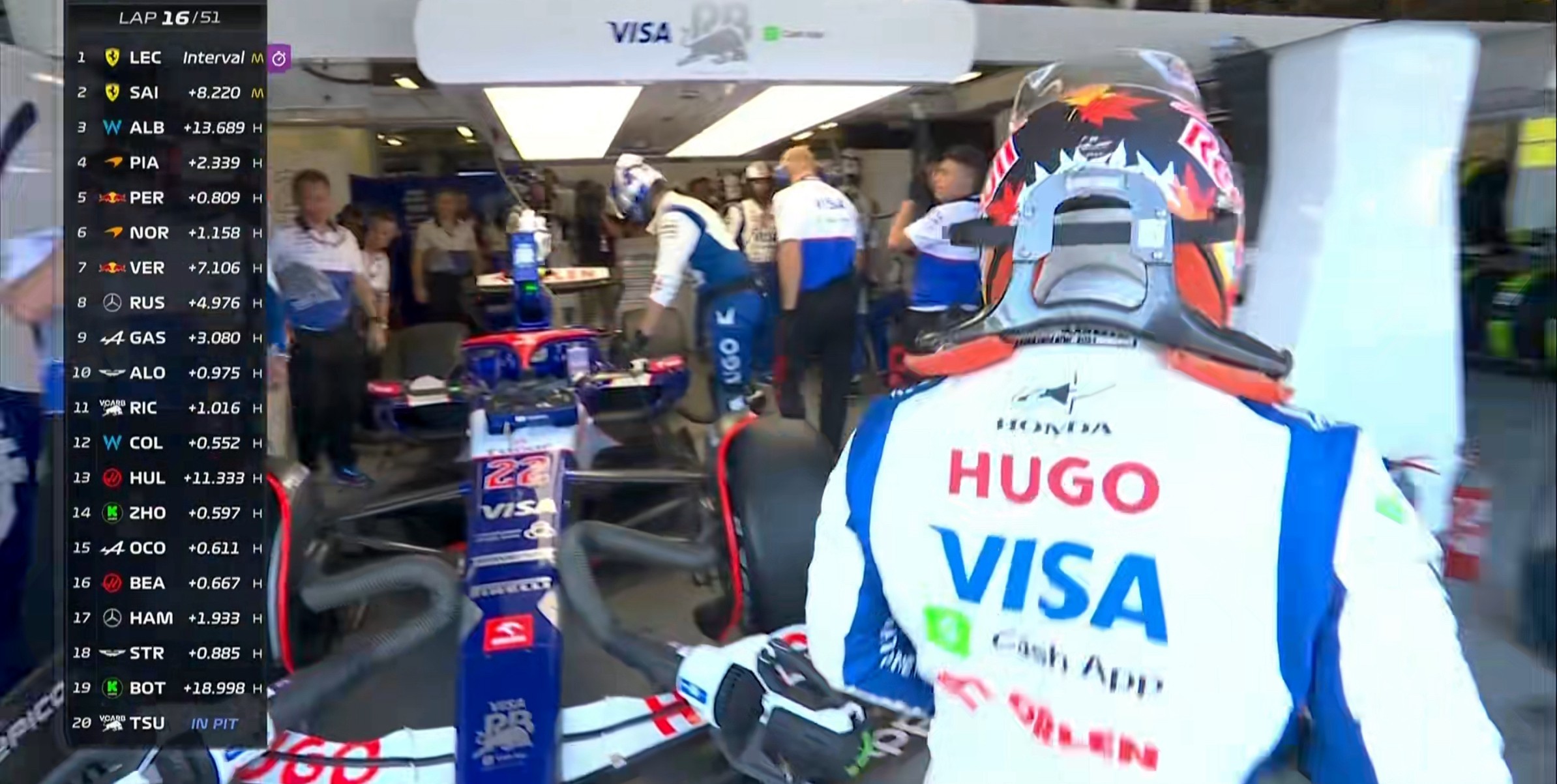 赛前,FIA更新了最终版的发车顺序,勒克莱尔杆位起跑,周冠宇第17,加斯利第18,汉密尔顿、奥康被罚至维修区起步。