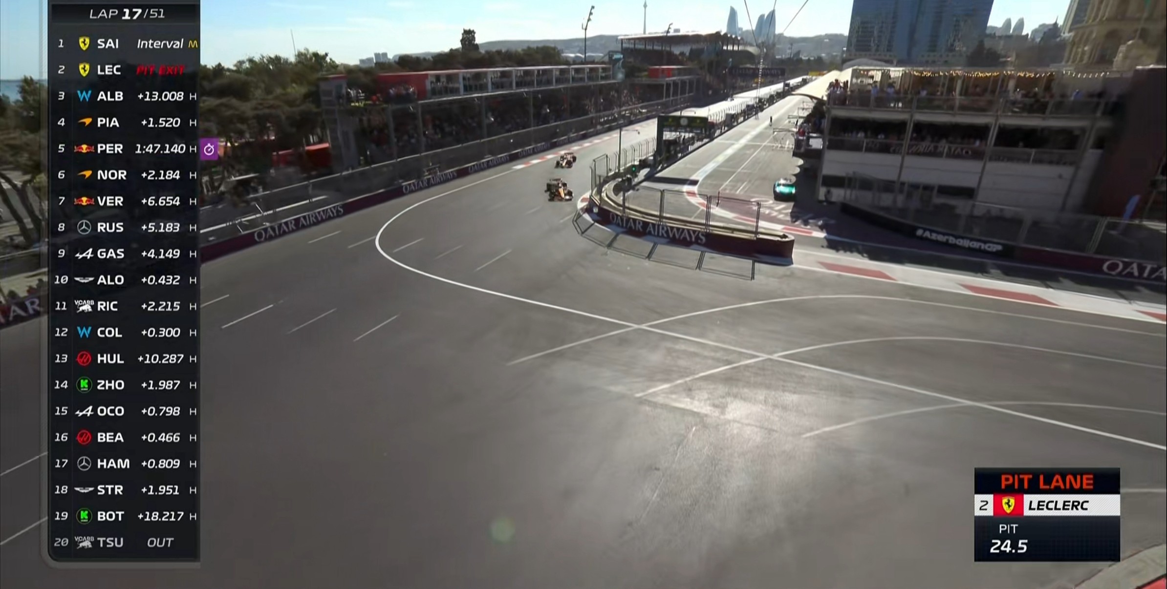 第17圈:勒克莱尔进站执行一停,出站后落到阿尔本身前!