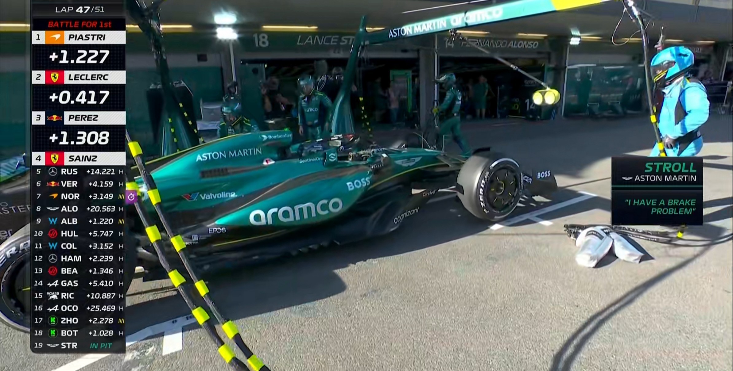 第47圈:斯特罗尔因赛车刹车问题选择退赛!