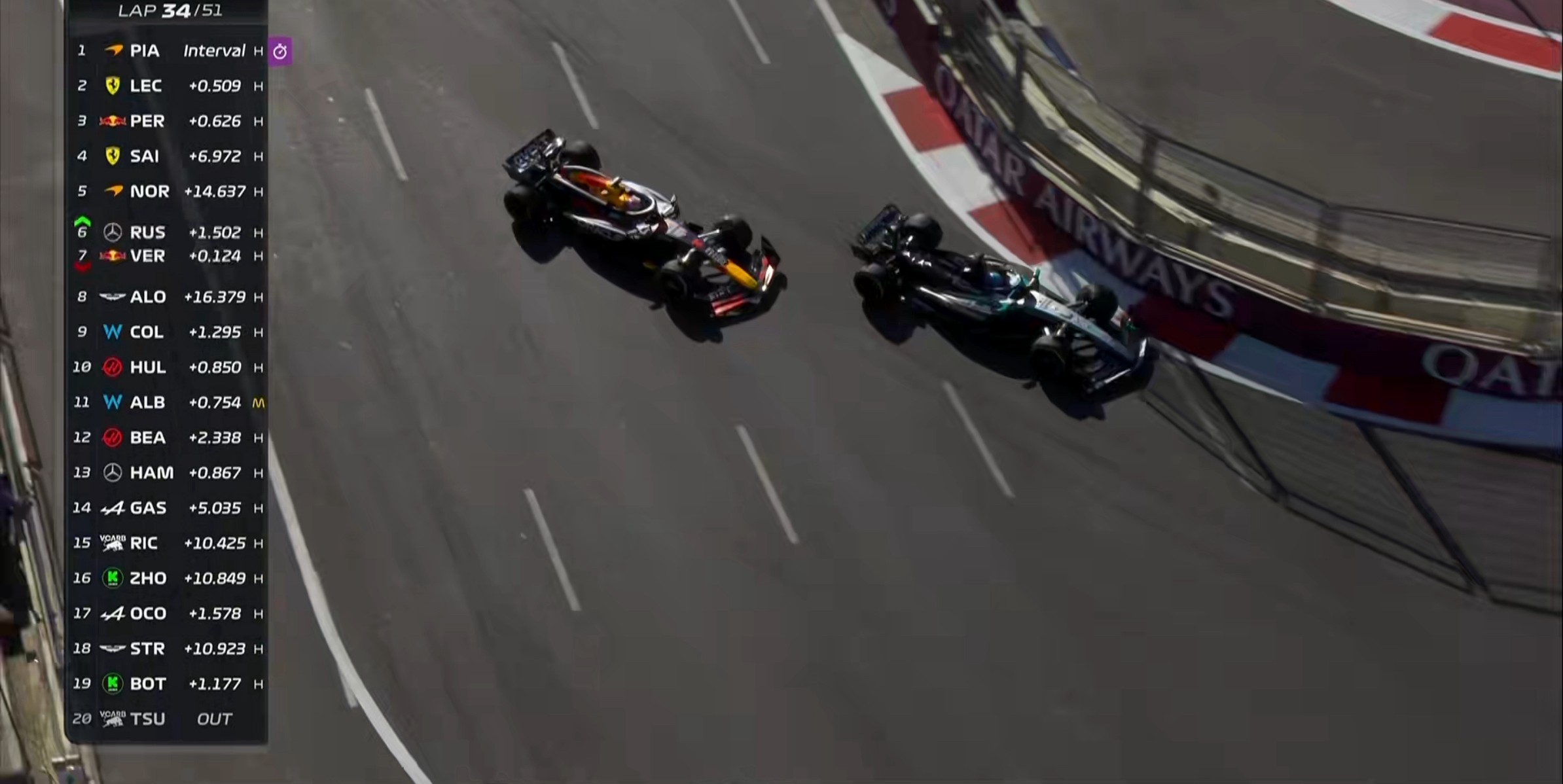 第34圈:拉塞尔完成对维斯塔潘超越,诺里斯还未执行一停!