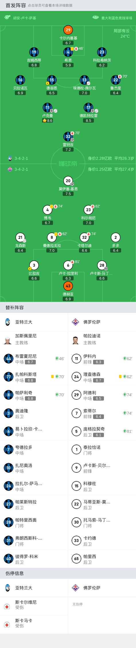 北京时间9月15日,意大利足球顶级联赛第4轮,亚特兰大主场迎战佛罗伦萨。上半场,卢卡斯-马丁内斯补射破门,雷特吉头球扳平,莫伊塞-基恩推射建功,上半场结束前,德凯特拉雷、卢克曼1分钟连进2球将比分反超。下半场,卢克曼铲射打偏,多多远射被门将没收,最终,亚特兰大3-2佛罗伦萨。