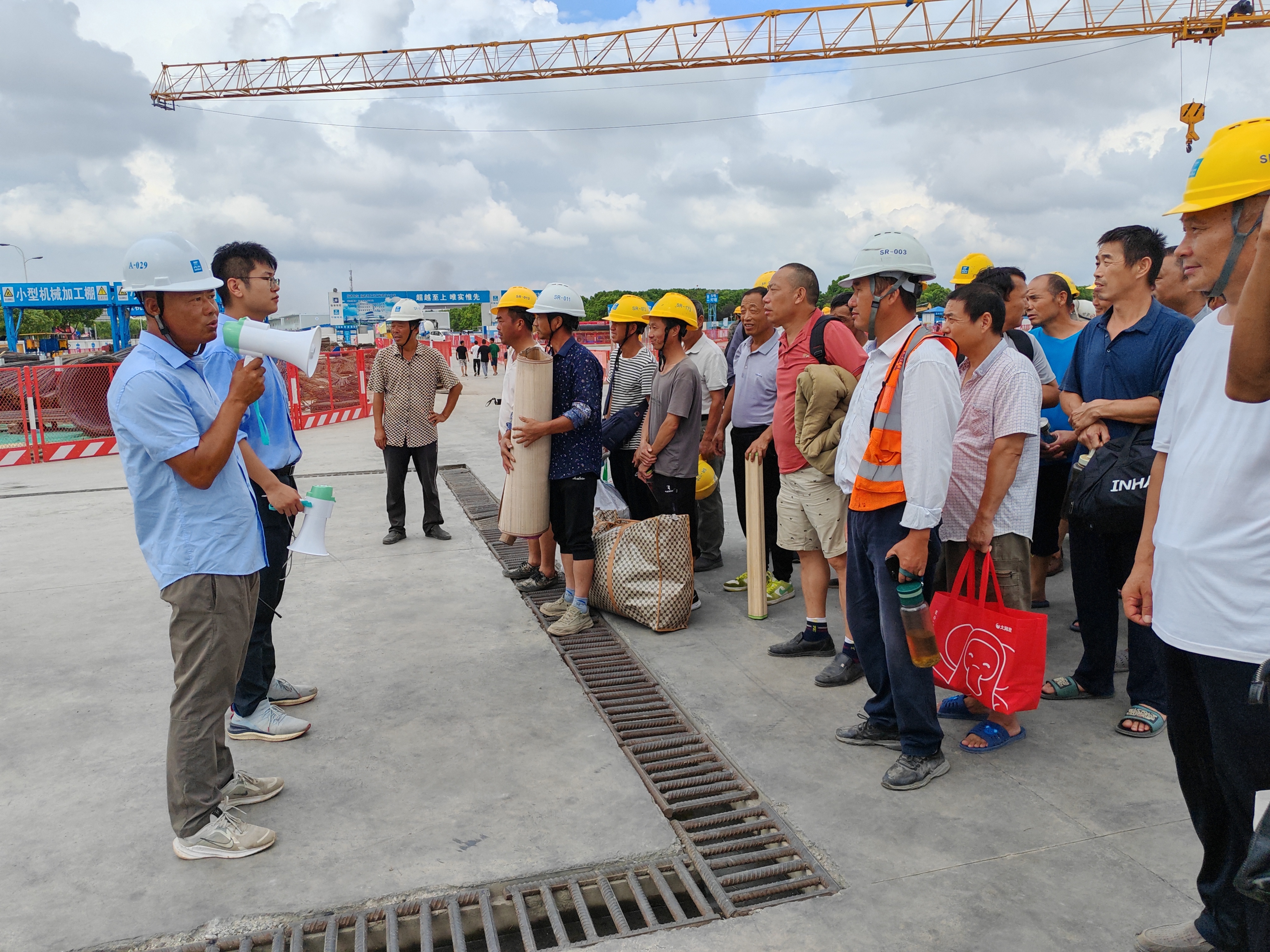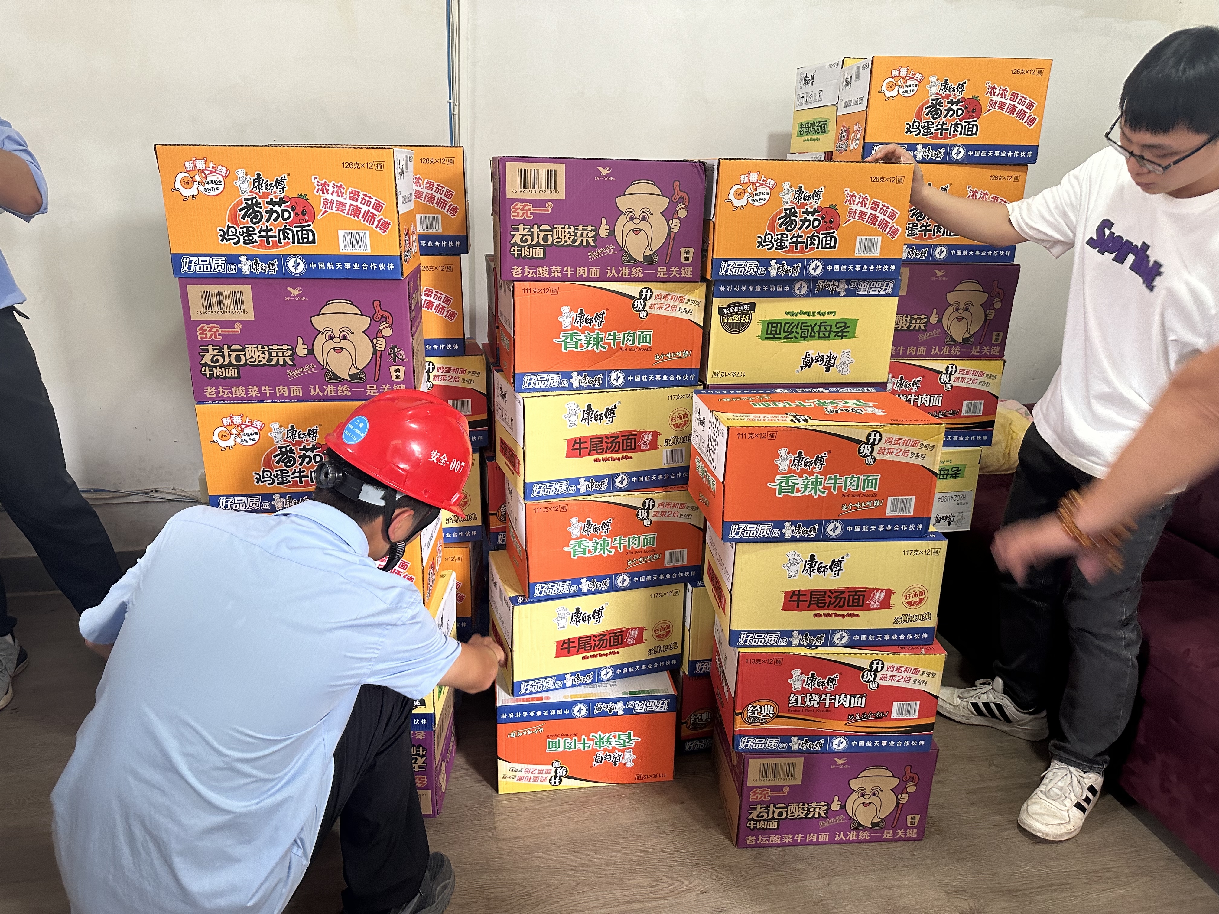 该项目共有近600名工友居住在项目上,如何在短时间内迅速有序转移至安全可靠的地方?结合此前制定的防台防汛工作方案,项目方提前锁定了该处相邻位置的安置点,并为女工友设置了单间。项目方一小时内迅速采购盒饭、方便面、面包套餐等物资,做好安置转移后勤保障工作。