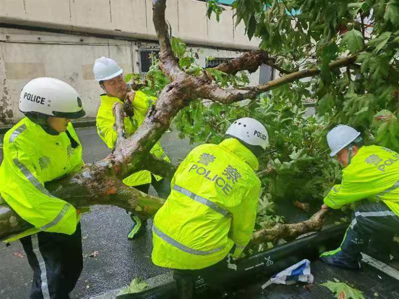 南京西路派出所也积极行动起来。上午 9 时,该所组织民警进行街面巡逻,发现路面有多棵树木倒塌,这不仅影响道路通行,还存在安全隐患。