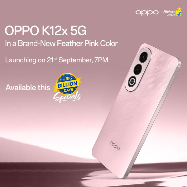 OPPO K12x 5G将为印度市场带来新的颜色选项——Feather Pink(羽毛粉)。