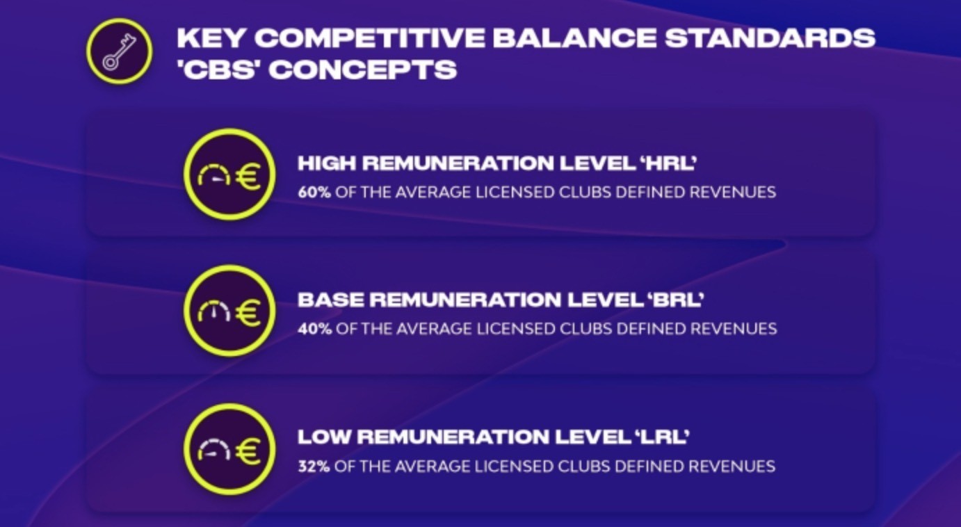 每家俱乐部能够支出的金额将取决于俱乐部两个赛季的平均收入。俱乐部的收入包括三类:比赛收入、商业赞助、其它。