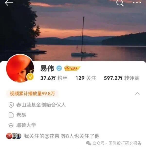 有网友在投资社交平台上举报称,易伟靠着人设收船票每年4.5万/年,给推荐股票(我也缴了4.5万),据说收了3000多万,易伟自称十倍以下的股票看不上,但是给船员推荐的股票都是管理层轮番减持的小票,在28块以上多次微信推荐中达安目前价格16块多,去年7月份易伟发行的基金截止目前亏损30%多;还有三夫户外。