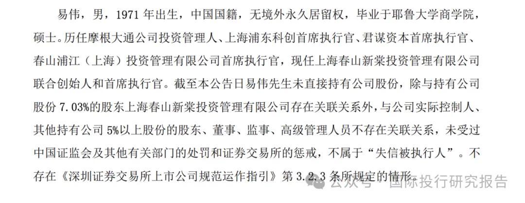 3 、〔2024〕89号处罚书显示,当事人:易伟,男,1971年11月出生,住址:广东省深圳市福田区。〔2023〕5号显示,当事人:易伟,男,1971年11月出生,上海春山新棠投资管理有限公司(以下简称春山新棠)法定代表人,住址:广东省深圳市福田区。