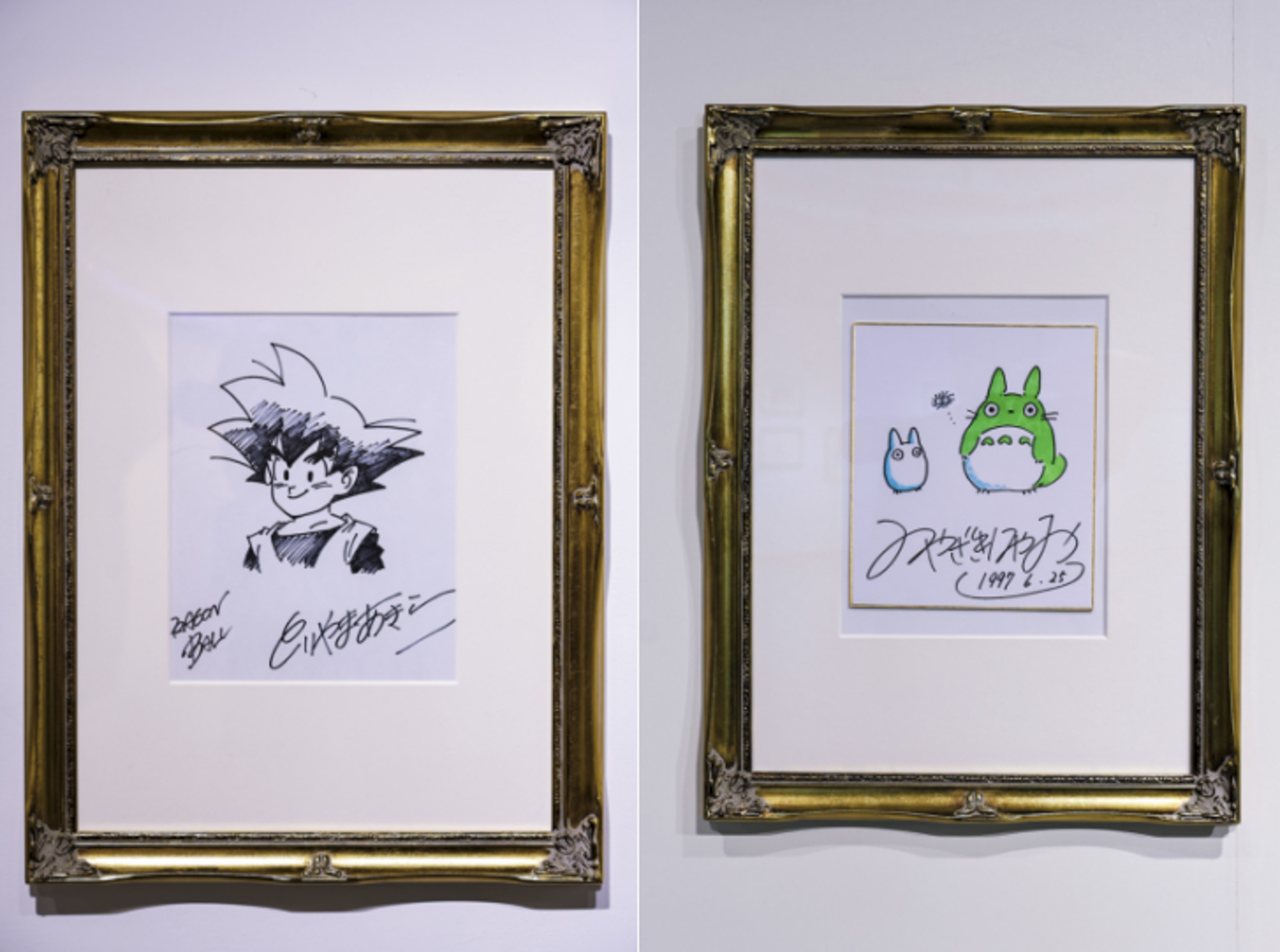 鸟山明(左)、宫崎骏(右)的亲签手稿,几乎是到场粉丝必拍的。