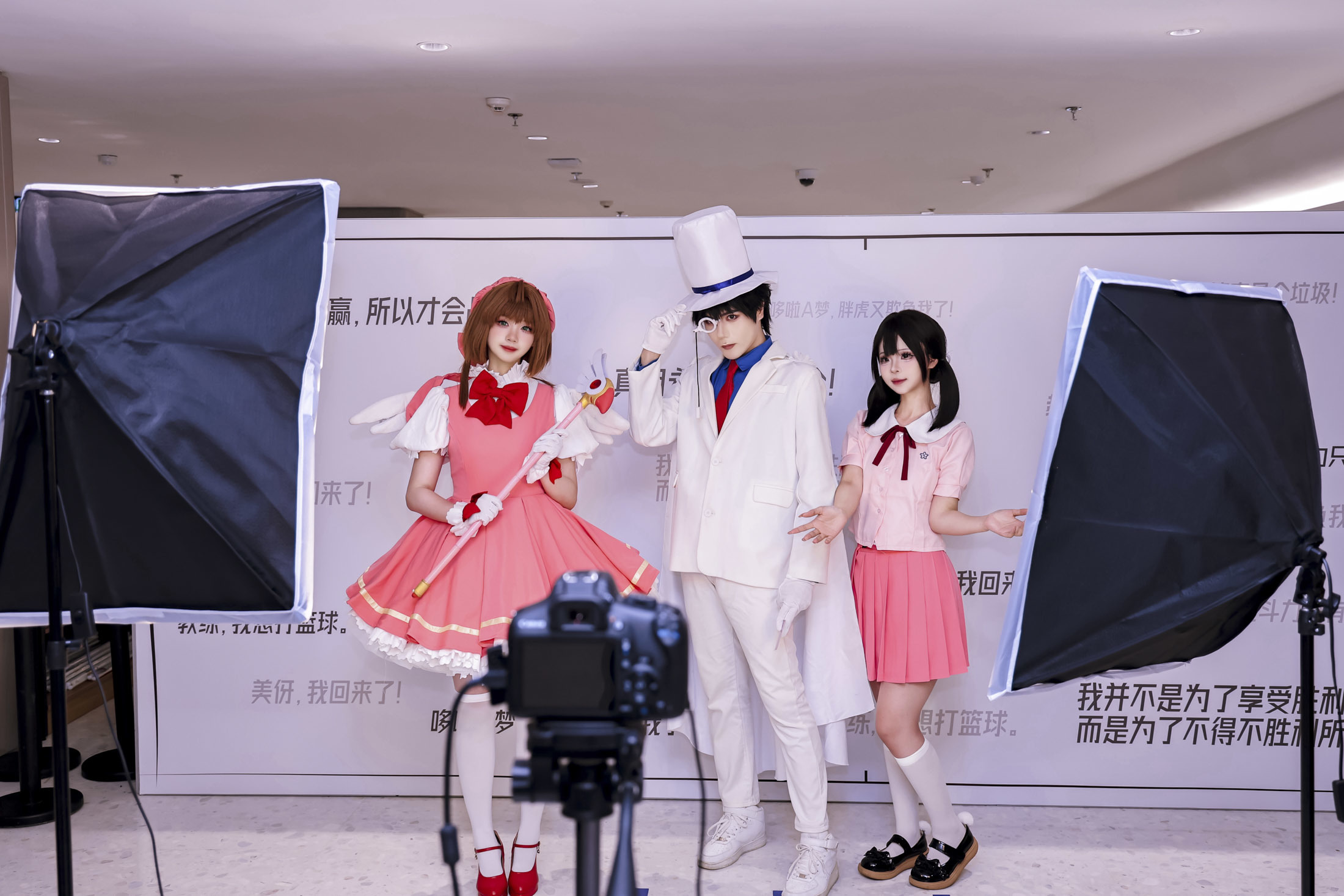 手翻书制作现场的coser小樱(左)、基德(中)、静香(右)。