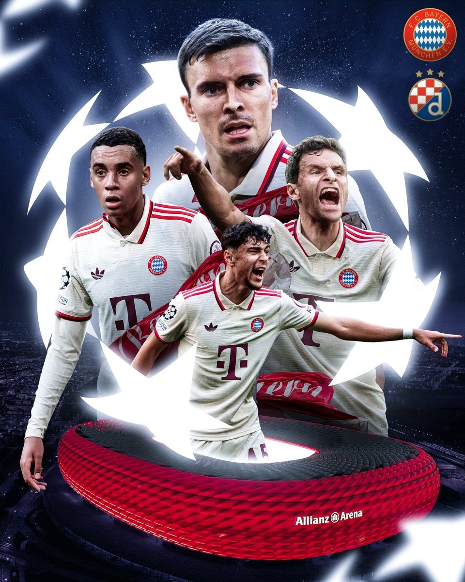 新赛季欧冠联赛阶段首轮,拜仁将主场对阵萨格勒布迪纳摩,赛前,拜仁官方发布比赛海报。