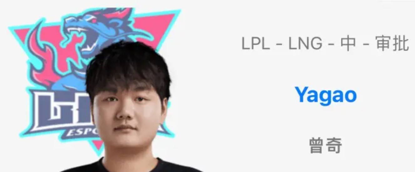 英雄联盟数据和信息专业网站OBGG上显示,中单选手Yagao为LNG出征S14全球总决赛的申请正在审批中。