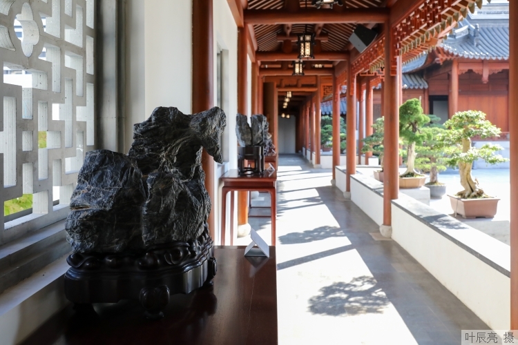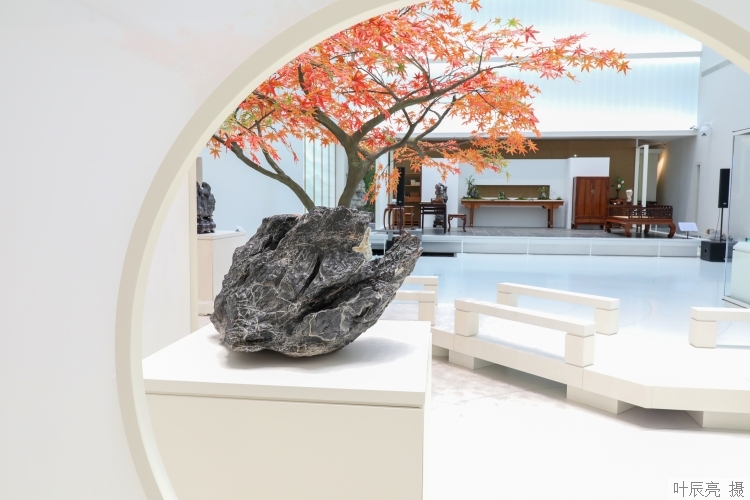 参观完四楼江南造物馆,沿着扶梯上五楼,眼前是豁然开朗的一处露天新景致,亭台水畔间树石环绕。据介绍,上博东馆设计建造时,就将屋顶花园打造成一处幽居闹市的江南新古典园林“云林”,分为东中西三个区域。上博携手上海植物园全新推出的“木石双清:江南石供与海派盆景展”,巧妙地将古石供、名石新供、海派盆景陈列其间,与园林相得益彰,使山林岩谷之趣溢然环堵之间,令观众流连。据上博党委书记汤世芬透露,配合市里和馆里重大活动,日后屋顶花园还将和江南造物馆 、古代文明探索宫等展厅联动,举办各类与其调性相符合的展览和公教活动,比如江南文化雅集,昆曲、评弹、琵琶、古琴表演,以及非遗展示活动等,向世界展示江南文脉与海派风情,让人们在诗意“上海客厅”遇见传统新生活。