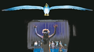 为了实现这一理念,剧组对舞台进行了大刀阔斧的改造,拆除了部分观众席座位,使得舞台与观众席之间形成了一条真实的“路”。一只巨大的海鸥悬挂在观众席上方,成为连接现实与戏剧世界的纽带。这种独特的舞台设计,让每一位走进剧场的观众可以看到一个与传统镜框舞台截然不同的开放式空间,它打破了舞台与观众席之间的界限,不仅营造出一种开放而沉浸的观演环境,让演员的表演更加自然流畅,也让观众能够更加近距离地感受到剧中人物的情感波动和命运变迁。