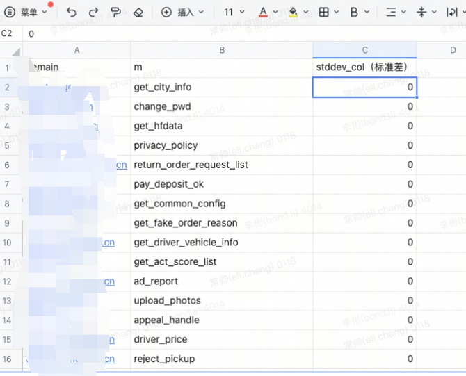 通过对一段时间内不同 API 的body_bytes_sent 做标准差计算,获取标准差为 0 的 API,则这部分API 被判断为公共 API。(如图7)