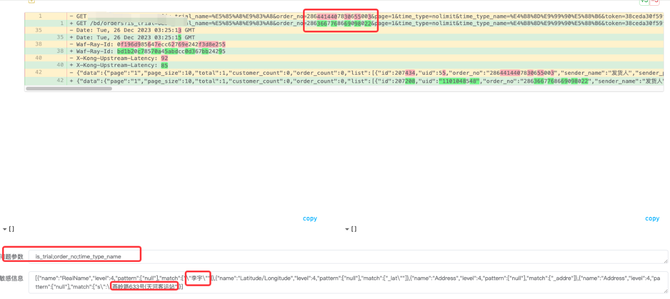 水平越权漏洞:A 用户使用自己的鉴权参数可以查看 B 用户的订单。
