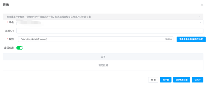 对于一些接口请求量小的,可能无法达到预定阈值的,可以通过人工添加合并规则的方式进行 API 合并。(如图10)