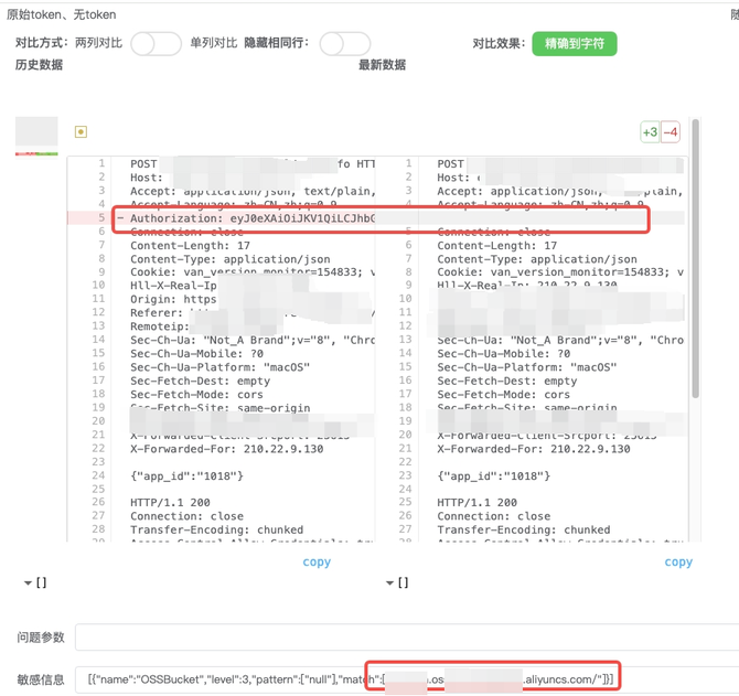 如果 req1的响应包包含敏感数据,就判定为一个未授权访问漏洞(无效的鉴权参数)(如下图4)