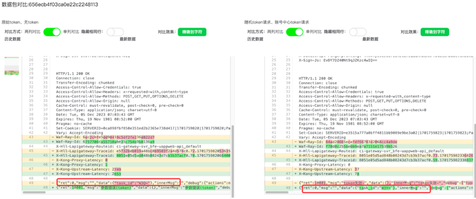 在判断水平越权时,如果越权成功,回显就是相同的,但是回显中可能包含一些时间戳、traceid 之类的信息,影响判断。不能完全使用 rsp1.body==rsp2.body 的方式来判断。