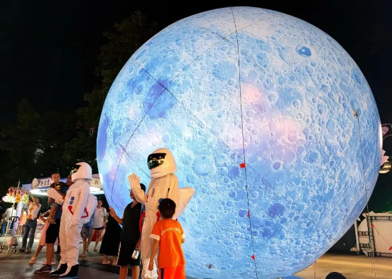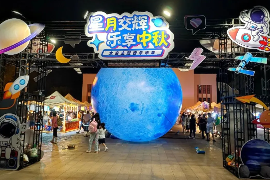 9月14日至17日,新会区在新会人民会堂举办“星月交辉,乐享中秋”——太空主题音乐市集。市民游客在享受美食盛宴的同时,在精心布置的月球氛围装饰下尽情拍照“打卡”,在月光下与“宇航员”小分队展开趣味横生的游戏互动,欣赏月球主题音乐会,感受从“赏”月到“登”月的别样体验,让中秋佳节成为一次从视觉到心灵的全方位探索与享受。
