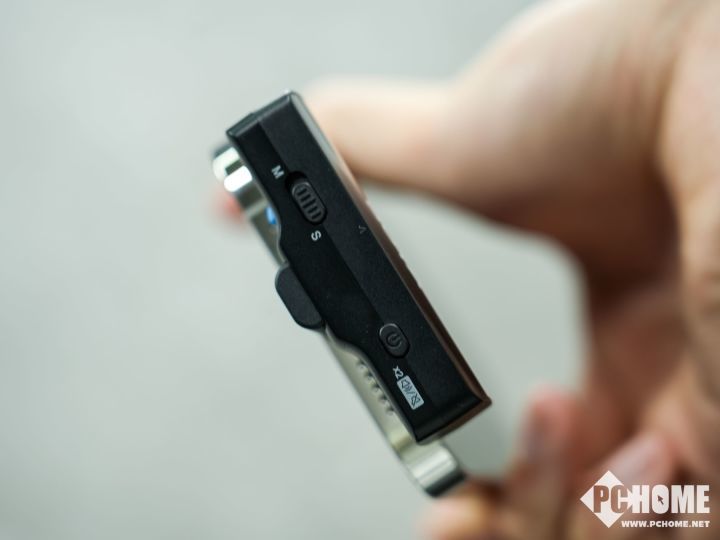 看看细节,接收器上配有一个小推钮,是用来切换单声道和立体声的,M代表录制出来的是单声道,S代表立体声。单声道录制出来的效果更适合于演讲这种音频录制,如果是歌曲录制、沉浸开箱这种需要更沉浸感的,S立体声的效果会更不错。