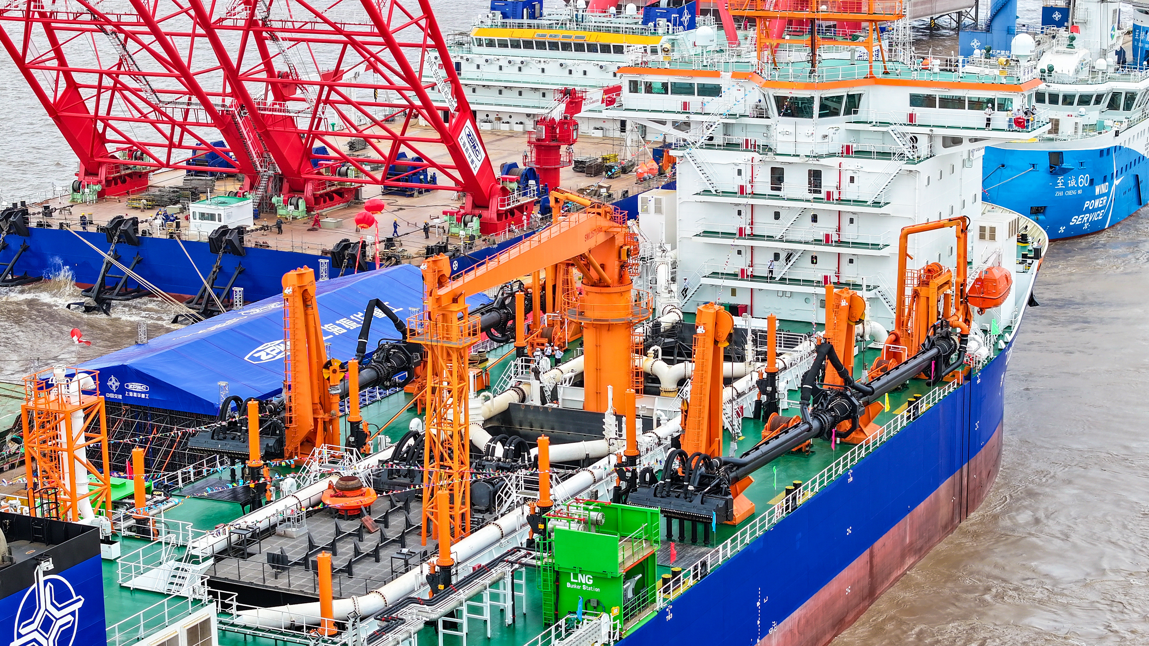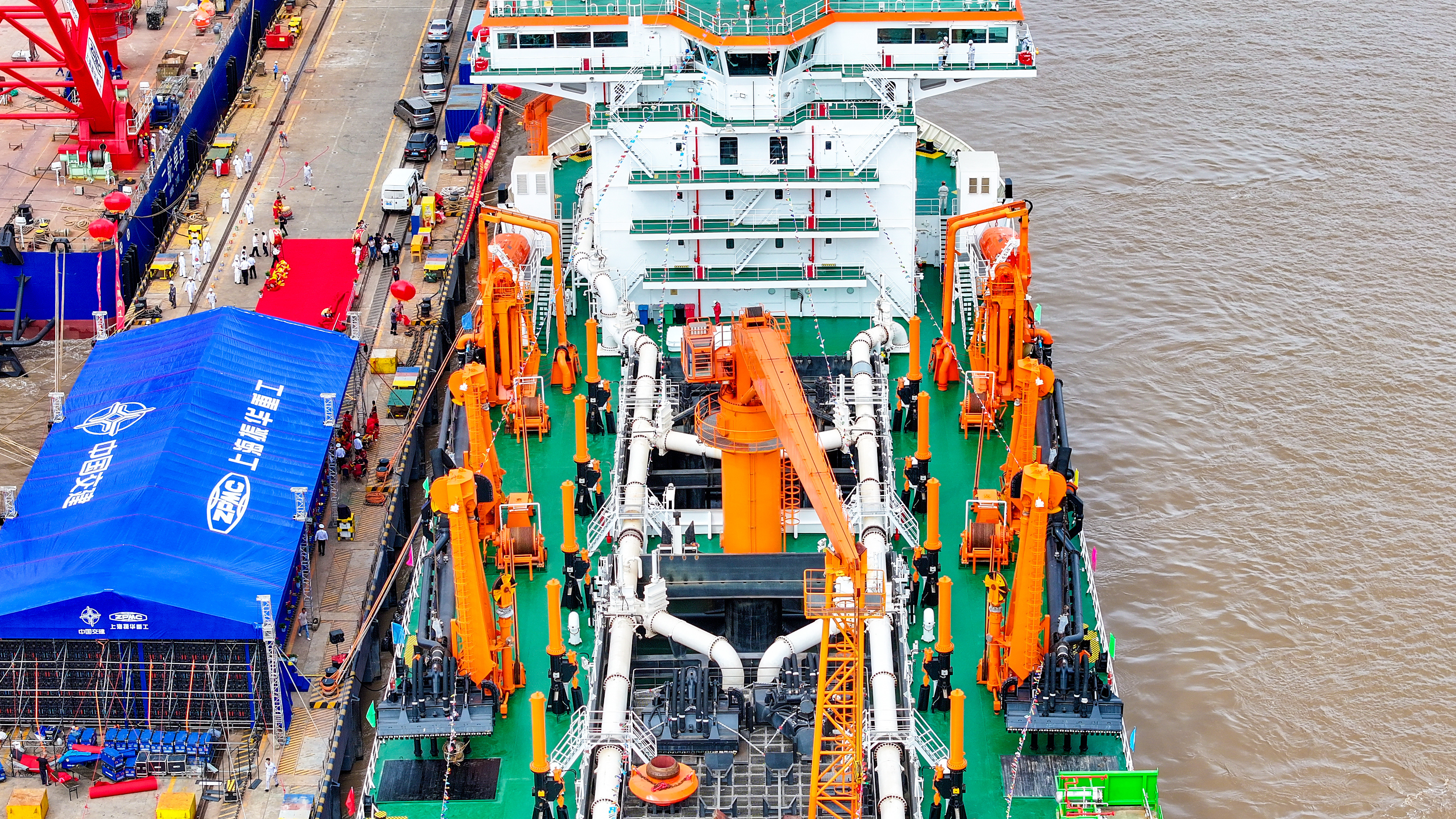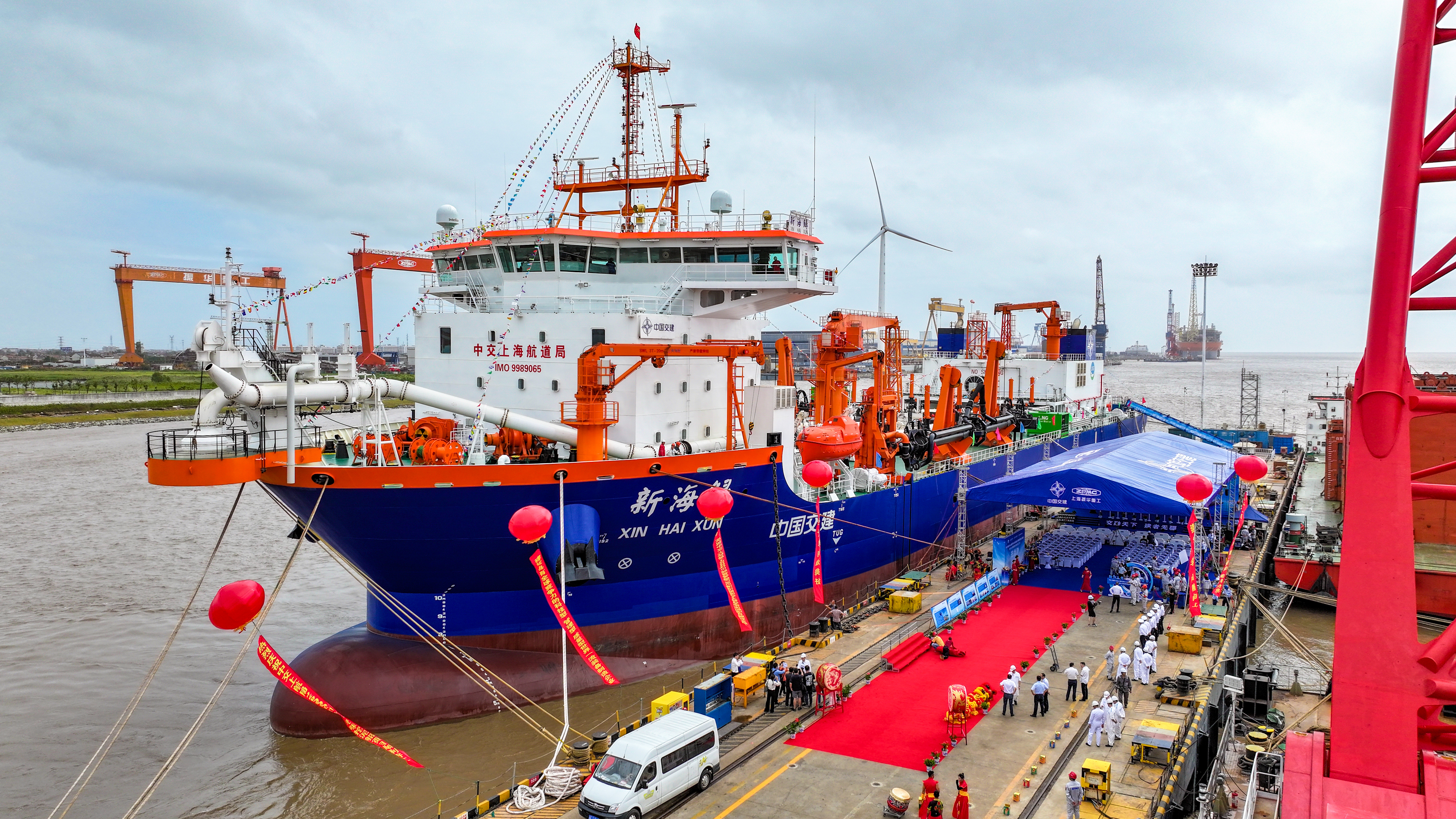9月19日,中交上航局投资、中交疏浚技术研究中心总包、中国船舶集团第七〇八研究所设计、上海振华重工承建的15000方舱容双燃料动力耙吸式挖泥船“新海鲟”轮交船仪式在振华启东海工顺利举行。