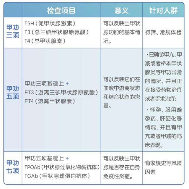 我们常听说的甲功三项、五项、七项,指的是针对不同的人群查不同的指标,有不同的意义。