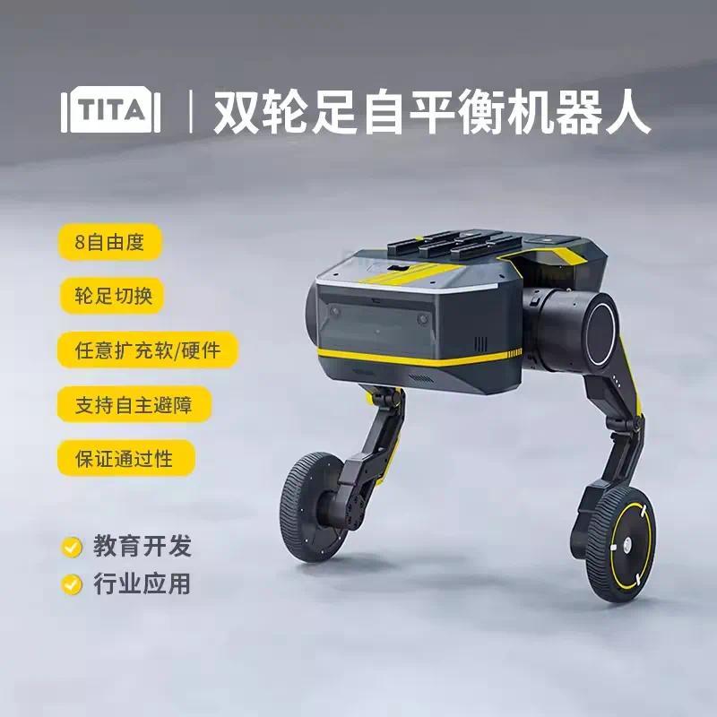 TITA机器人是一款具备高度感知力和决策力的轮足机器人,全身拥有8个自由度,具备出色的抗摔性能、强大的自我恢复能力、即时响应能力,以适应各种复杂地形下的高效运动。
