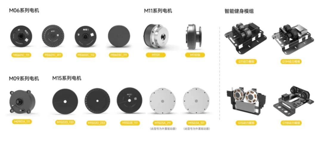 本末科技M6、M9、M15和M11系列电机,分别面向家用机器人、工/商用领域机器人、智能健身器材等领域。