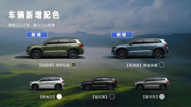 前脸绿野星辰点阵格栅、车身风行侧翼同色侧围,与山河揽峰前后包围设计融为一体,动感而不失优雅。新增圣湖蓝和仙踪绿2种车色,颜色纯粹,颜值能打,是用户打卡千里江山的最佳“拍档”。