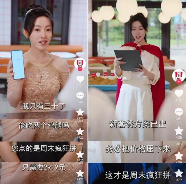 其二,通过邀请知名的短剧专业演员,足够专业台词、语气、神态、动作、演技等,既能通过剧情表演让观众们产生情感共鸣,实现情绪的感染和传达,还能借助明星效应,提高短剧传播量,从而覆盖更多观众群体。比如肯德基短剧聘用的是短剧《引她入室》的女主,凭借果敢细腻、有胆识和高智商的演绎,获得了观众喜爱,这也是肯德基自制短剧中最大的亮点之一。