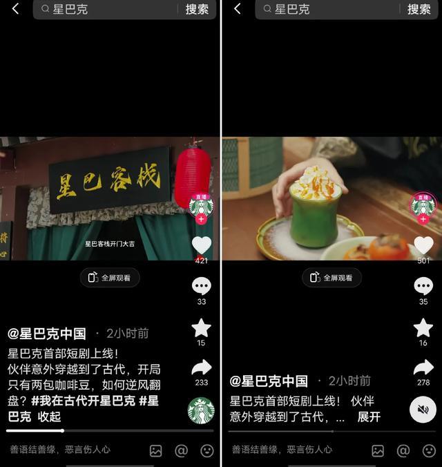 星巴克短剧走古风穿越路线,肯德基短剧走刺激重生路线。