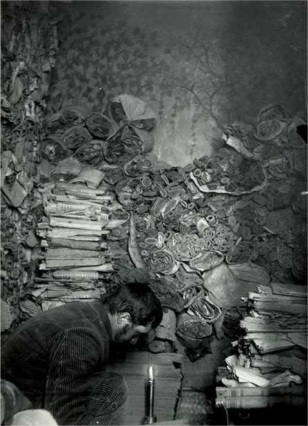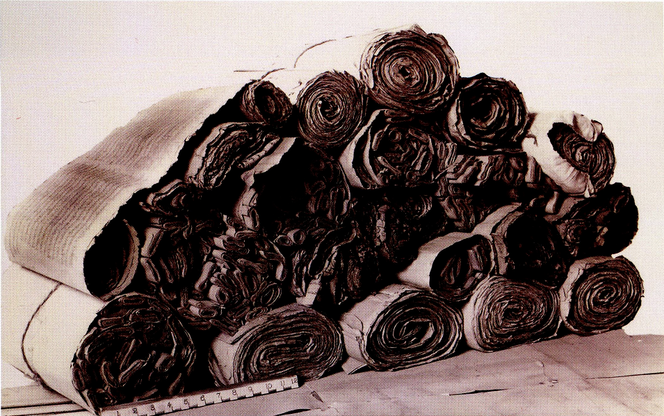 斯坦因从敦煌藏经洞刚刚拿出来的经卷。