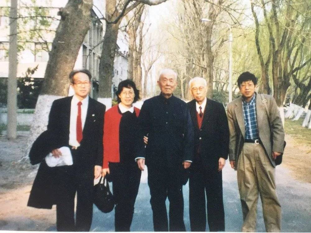 大学期间,荣新江与王永兴、张广达先生在课间留影(右起:张广达、王永兴、荣新江、张建国、卢向前)。(图/受访者提供)